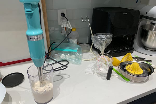 I made hummus recently and saved some chickpea cooking liquid (aka aquafaba) for some weird and fun vegan recipe experiments.